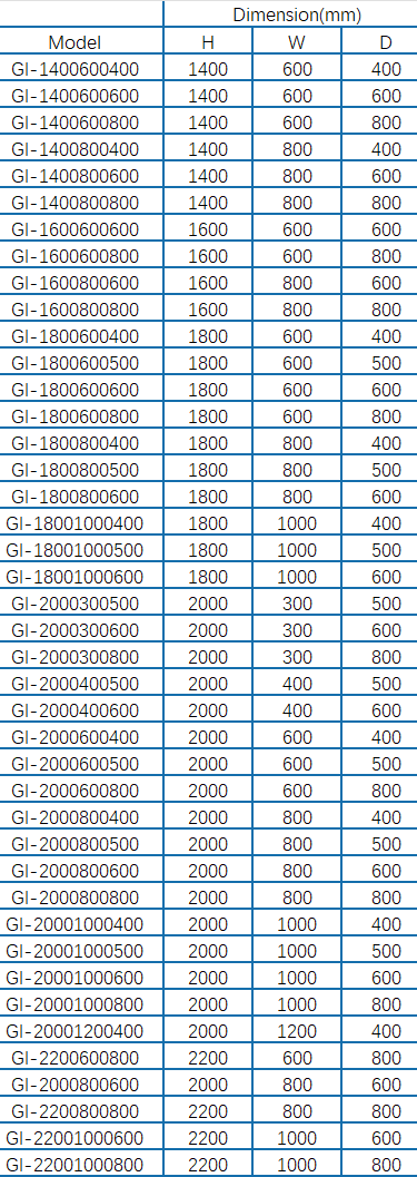 Material: cold rolling steel Thickness:front door:2.0mm,rear panel:1.5mm Protection degree:IP55